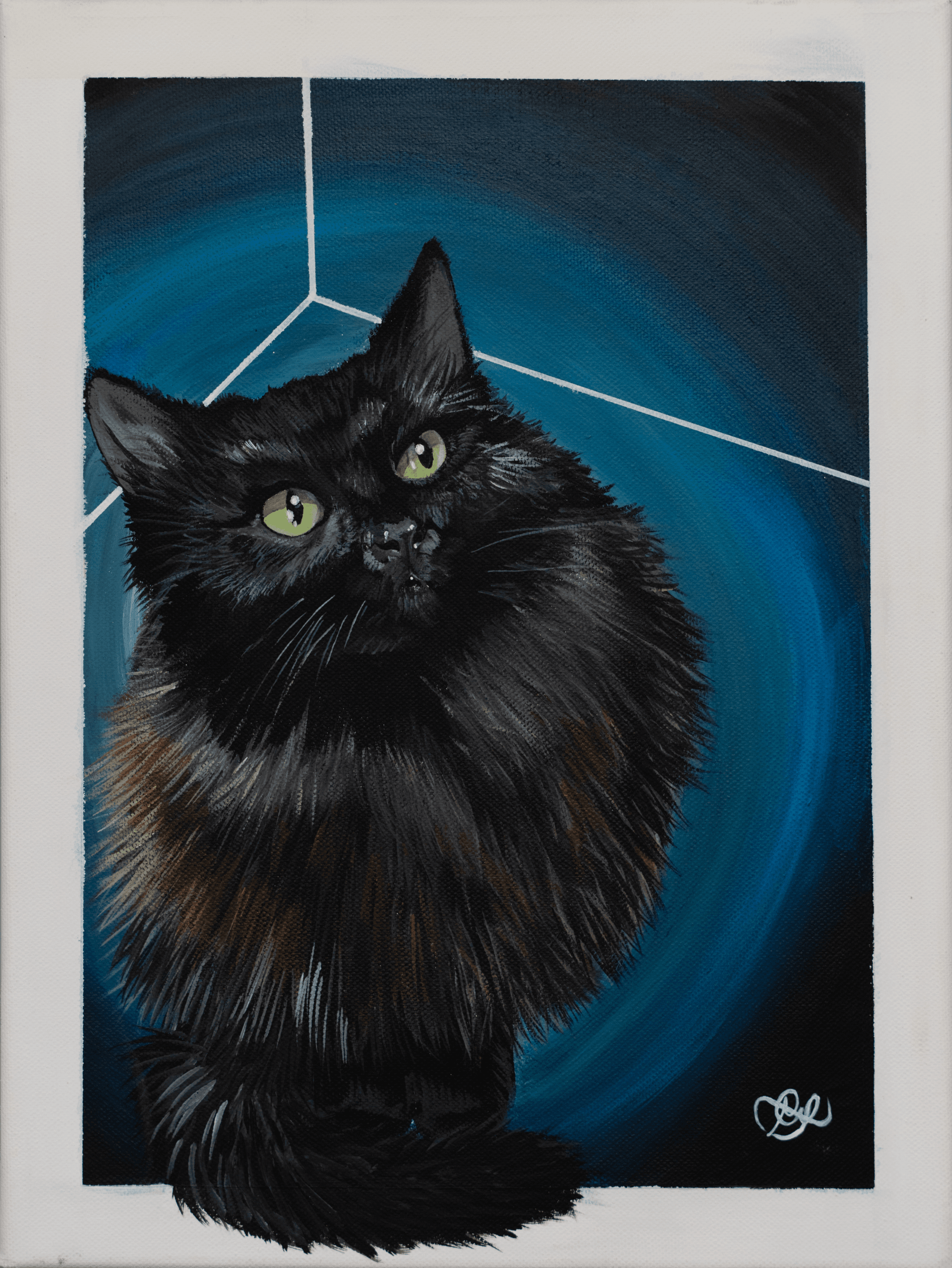 Con il tempo, la coda ha trovato il suo posto, bilanciando la figura e restituendo al soggetto la sua dignità felina.